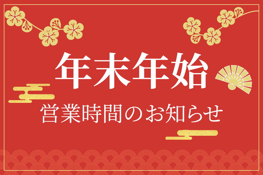 年内は12月27日まで通常営業しております。(カウンセリング等の予約は12月27日17時開始まで)