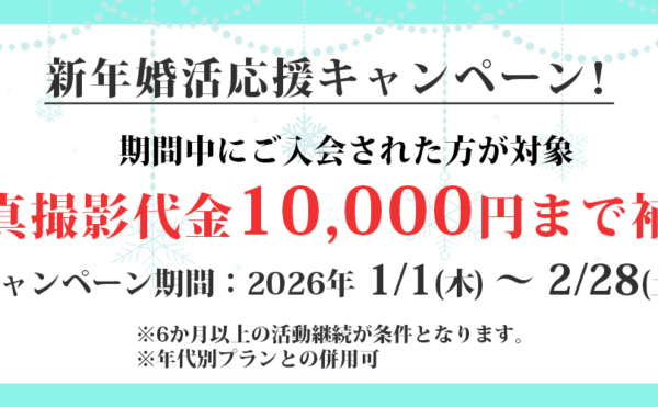 2026年1月4日キャンペーン管理人管理人 【2026年1月1日~2月28日まで!】新年婚活応援キャンペーン始まります!みなさん、明けましておめでとうございます! 京都婚活サロンNepisu(ネピス)の深尾です。 昨年は大変お世話になり、心より感謝を申し上げます。 本年もネピスをどうぞよろしくお願いいたします。 2026年1月1日<a class="read-more" href="https://kyoto-konkatsu.nepisu.com/blog-20260101/"> […]</a>